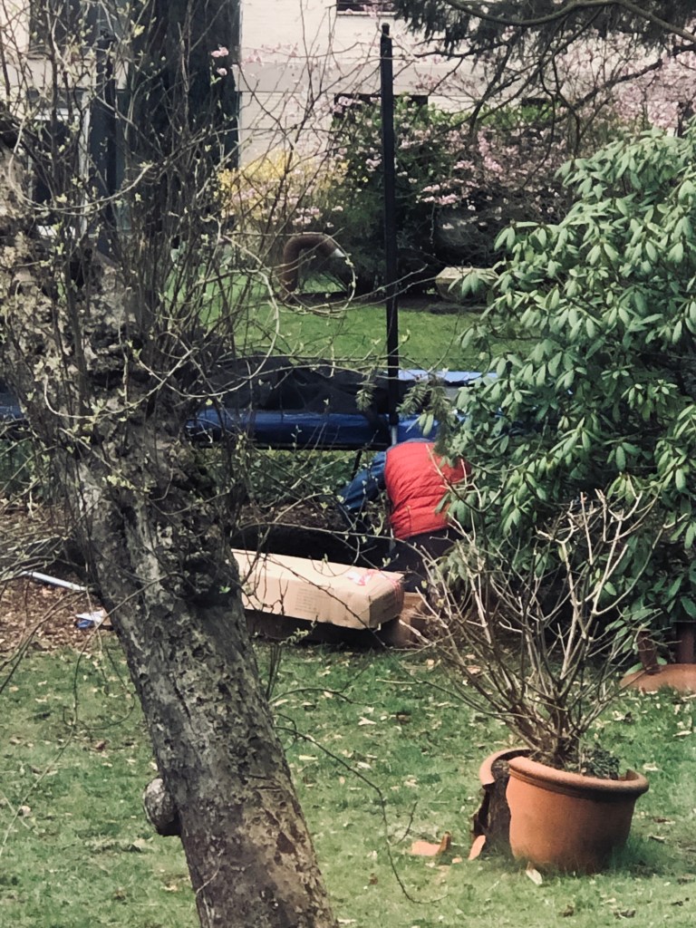 Der Nachmittag sah dann so aus: Boris hat weiter das Riesentrampolin aufgebaut, ich habe gearbeitet. Diesmal mit Noise-Cancelling-Kopfhörern. Am Abend war ich auf einmal so müde, dass ich nur noch den Laptop weglegen konnte und sofort eingeschlafen bin. In voller Klamotte. Corona-frei macht sooo müde. Und wie es hier aussieht… Aber das ist ein anderes Thema!