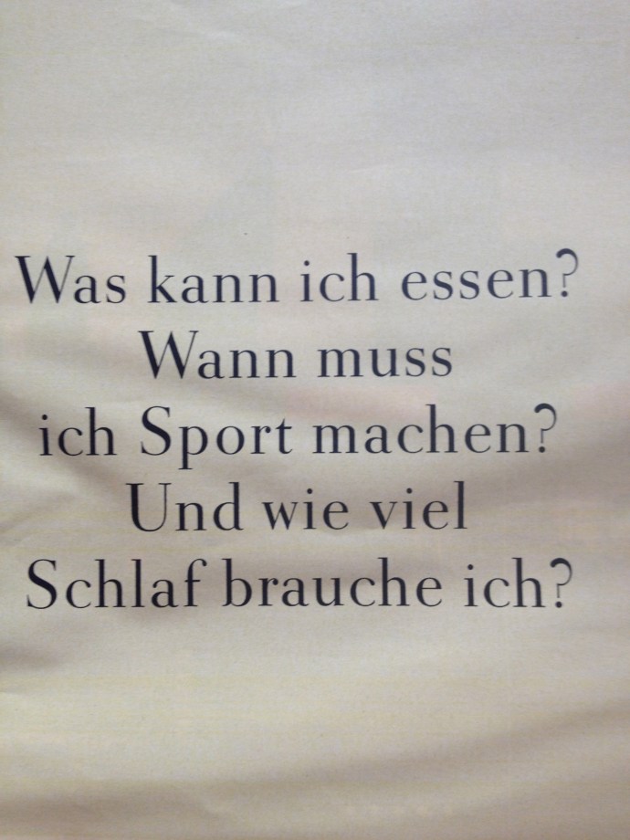 Aufstehen, Frühstück, fertig machen (6:30-8:30/2 Std) Bahn ins Büro (8:30-9:15/45 Min) @Agentur (9:15-14:15/5 Std) Bahn nach Altona (14:15-14:45/30 Min) Shoppen mit Mama (Ottensen) (14:45-17:45/3 Std) Bahn nach Hause (17:45-18:00/15 Min) Abendbrot mit Schwiegervater (18:00-20:00/2 Std) Vorlesen und dabei eingeschlafen (20:00-20:30/30 Min) Wieder wach und Internetfernsehen (22:00-01:00/3 Std) Heute nicht geschafft: Sport Aufräumen Garten Schrank aufräumen…